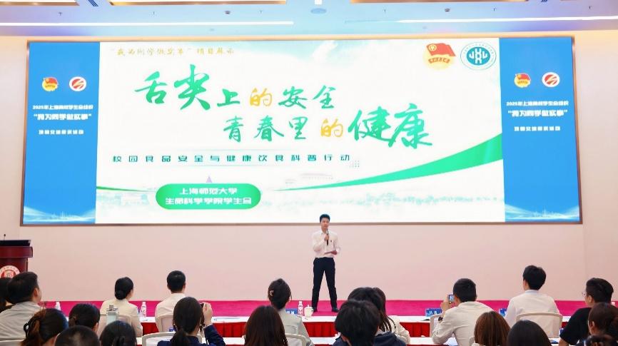 10月19日,2025年上海高校学生会组织“我为同学做实事”项目交流展示活动在上海理工大学顺利举办。由我校团委选送的生命科学学院学生会《舌尖上的安全·青春里的健康——校园食品安全与健康饮食科普行动》项目入选市级交流展示,获评最佳风采展示项目(全市共7个)。
